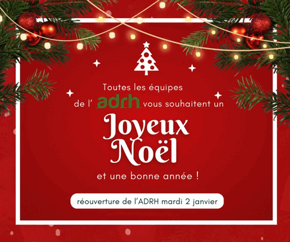 Ho HO hoL'ADRH fermera ses portes vendredi 22 Décembre pour ré-ouvrir le 2 Janvier 2024.A l'année prochaine !